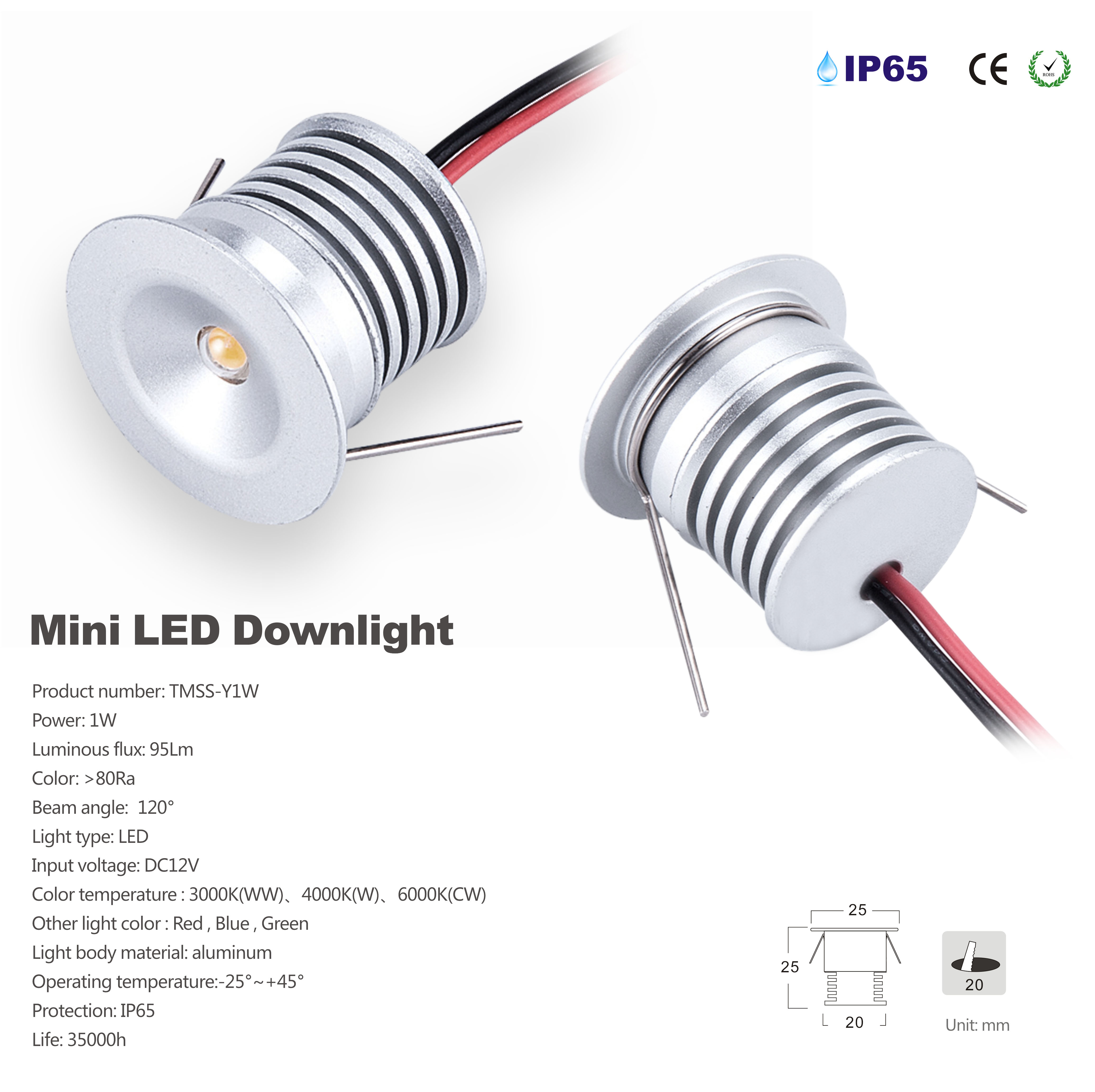 Mini LED downlight1W,95LM,AC90-260V,DC12V,IP65,80Ra,color temperature :3000K,4000K,6000k,other light color:red,blue Images |